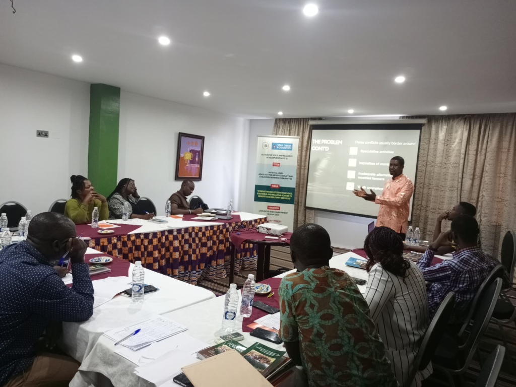 Livelihood & Environment Ghana (LEG), with support from STAR-Ghana Foundation, convened a strategic engagement with civil society organizations and media representatives in Accra to review and discuss our draft policy proposal to amend Ghana’s Minerals and Mining (Compensation and Resettlement) Regulations, 2012 (L.I. 2175).